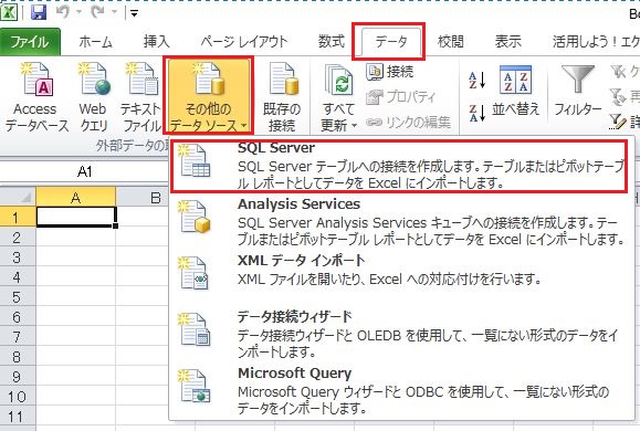 エクセルでSQL Serverからデータを取得するにはどうすればいいですか?
